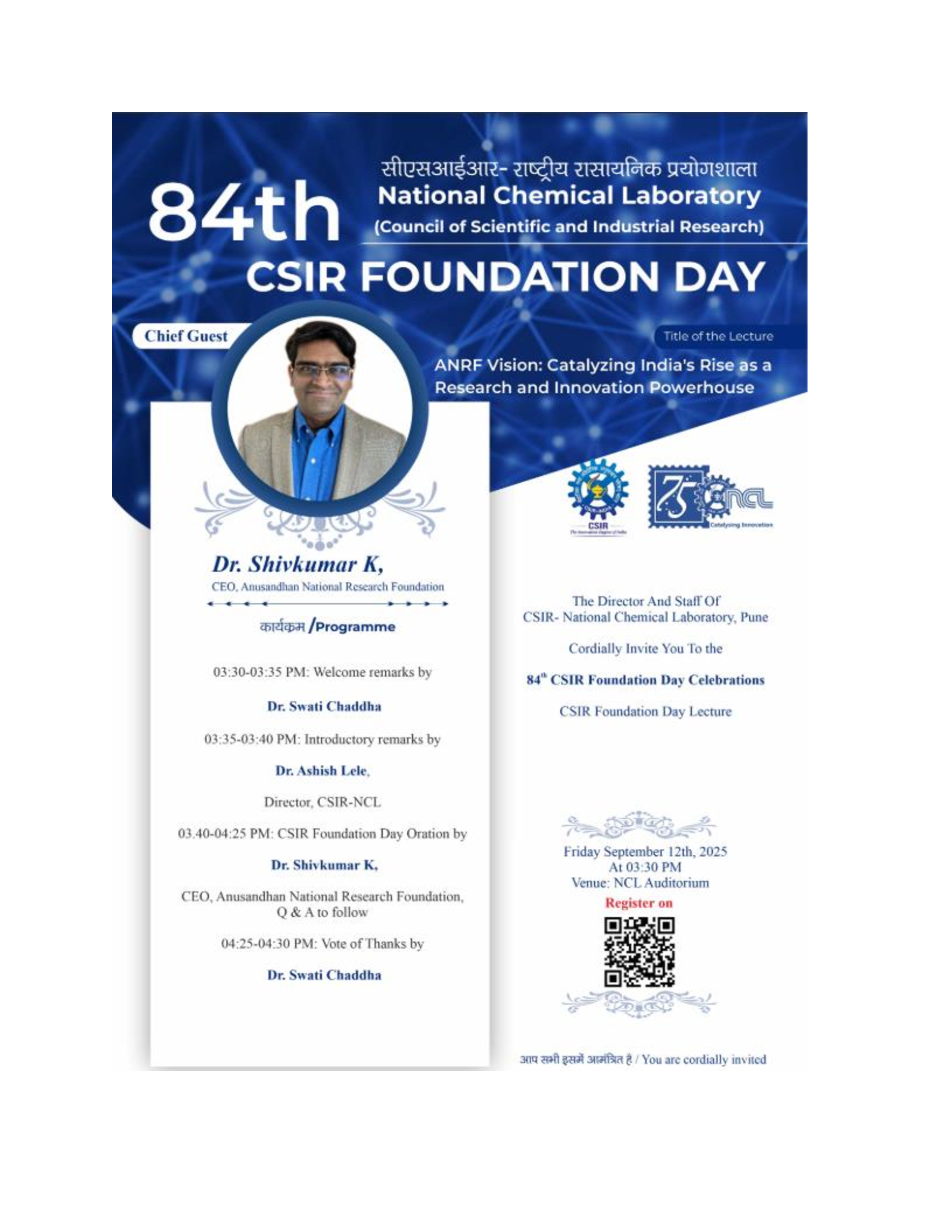 CSIR - NCL 71st Foundation Day lecture by Prof. Gagandeep Kang, Professor, Wellcome Trust Research Laboratory, Christian Medical College (CMC), Vellore on COVID-19 and Vaccines: The Road Ahead